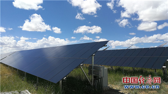 穿行在平均海拔2700米的高寒干旱沙質(zhì)草原上,從車窗望出去,巨大的光伏組件組成了一個(gè)個(gè)整齊的子陣,遠(yuǎn)處看上去如同一片浩瀚的藍(lán)色海洋,覆蓋了整個(gè)廣袤的大地,在正午時(shí)分的陽光下熠熠生輝。