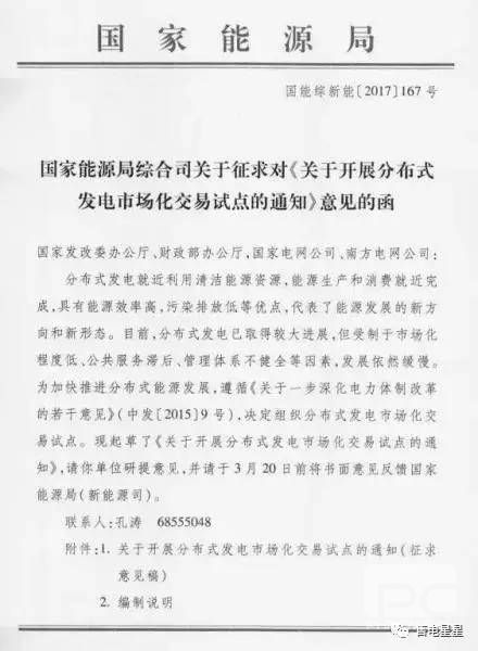 近日,國家能源局綜合司下發(fā)關(guān)于征求對《關(guān)于開展分布式發(fā)電市場交易試點的通知》意見的函,給光伏市場帶來一大利好消息:分布式光伏可以市場化交易了?。ū疚膩碓矗何⑿殴娞柺垭娦切?微信號:zcm32597 作者