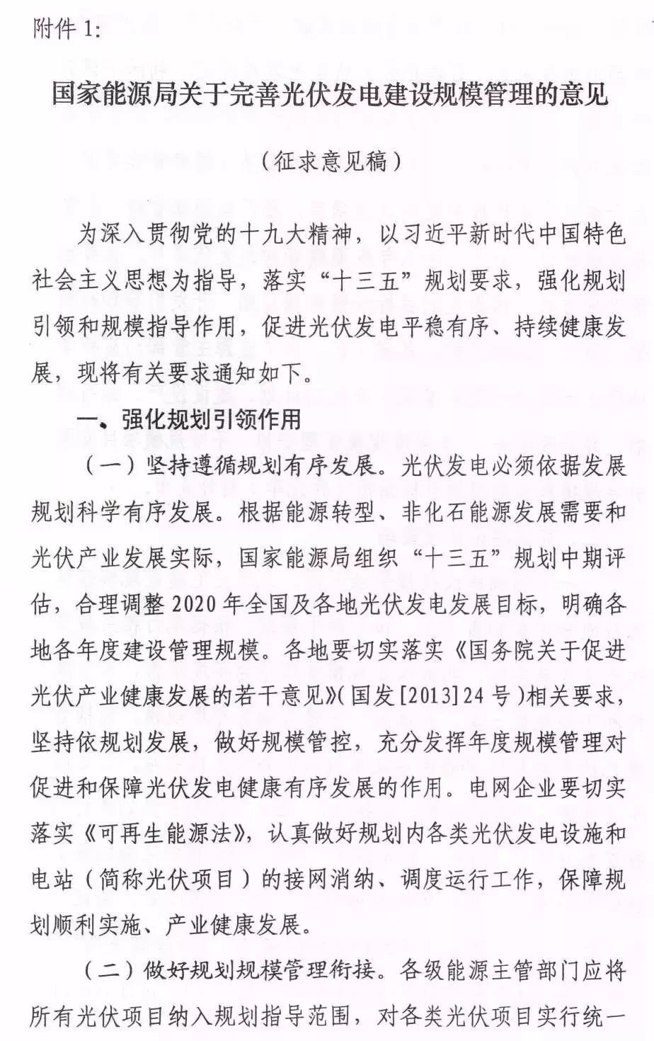 4月13日,國(guó)家能源局發(fā)布《關(guān)于征求光伏發(fā)電相關(guān)政策文件意見的函》,對(duì)《關(guān)于完善光伏發(fā)電建設(shè)規(guī)模管理的意見》和《分布式光伏發(fā)電項(xiàng)目管理辦法》兩個(gè)文件進(jìn)行征求意見。