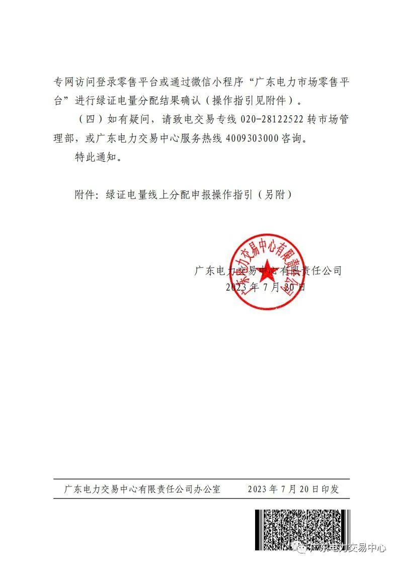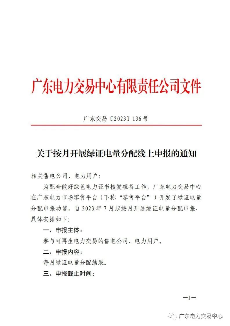 廣東電力交易中心發(fā)布關(guān)于按月開展綠證電量分配線上申報的通知。
