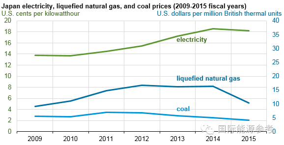 對電力市場而言,燃料價格的下降無疑是利好的消息。近兩年來,煤炭、天然氣價格的下滑在全球令許多消費者的電力賬單都減負不少。然而,在能源進口大國日本,電力消費者非但沒有感受到這一實惠,用電的價格反而一