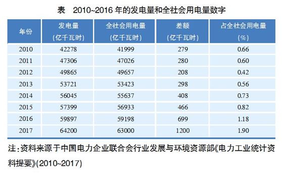 在我國的電力數(shù)據(jù)統(tǒng)計中,包括發(fā)電量和全社會用電量,發(fā)電量比全社會用電量大。有人以為發(fā)電量包括廠用電、線損,其實全社會用電量中也包括廠用電、線損。這個差額主要是進(jìn)出口電量。隨著我國國際交往增加,洲內(nèi)跨國聯(lián)網(wǎng),洲際聯(lián)網(wǎng)增加,以及全球能源互聯(lián)網(wǎng)的發(fā)展,發(fā)電量的數(shù)字會不斷增加,如在2010年差額為279億千瓦時,占全社會用電量0.66%,到2017年已達(dá)到1200億千瓦時,占全社會用電量1.18%。這是我們承擔(dān)的國際義務(wù),這部分發(fā)電量和全社會用電量一樣是不能少的,所以我們在預(yù)測全國用電量之外,應(yīng)當(dāng)預(yù)測總發(fā)電量。2010年~2017年的發(fā)電量和全社會用電量數(shù)字如下表: