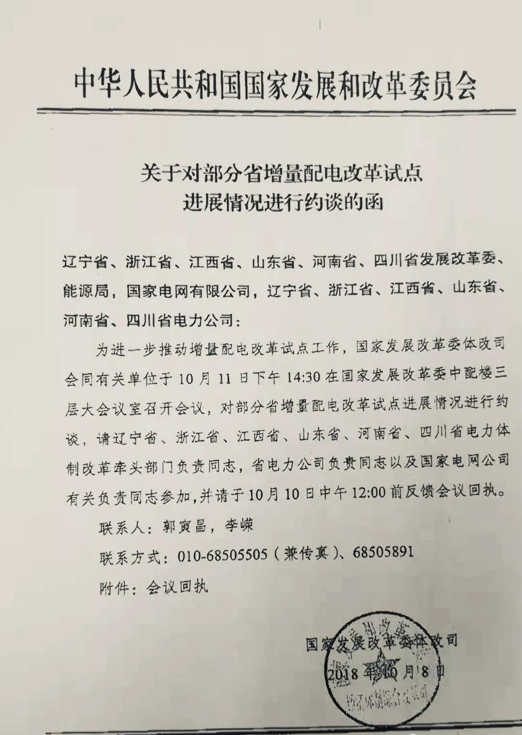 10月8日,發(fā)改委再次發(fā)文,對(duì)被約談的6個(gè)省份名單予以公布,此次約談將于10月11日下午14:30分進(jìn)行,遼寧、浙江、江西、山東、河南、四川6個(gè)省在名單內(nèi)。在這份《關(guān)于對(duì)部分省增量配電改革試點(diǎn)進(jìn)展情況進(jìn)行約談的函》中可以看到,遼寧、浙江、江西、山東、河南、四川省的發(fā)改委、能源局、國(guó)家電網(wǎng)公司及省屬電力公司將參與此次約談。