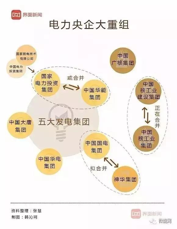 先前,從2015年中電投與國核技合并開始,能源央企的合并潮愈演愈烈。2017年8月28日,國電集團與神華集團合并,定名為國家能源投資集團有限責任公司。