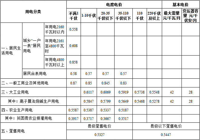 3.上表所列價(jià)格,除農(nóng)業(yè)生產(chǎn)用電外,均含可再生能源電價(jià)附加,其中:居民生活用電0.1分錢,其他類別用電1.9分錢。