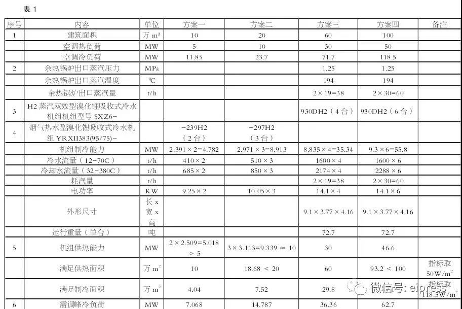 分布式能源站的設計主要是設備容量的確定,燃機部分根據項目的冷熱負荷確定,不在本次論述范圍,本文只討論四種項目規(guī)模的分布式能源站制冷制熱部分的設備選擇。