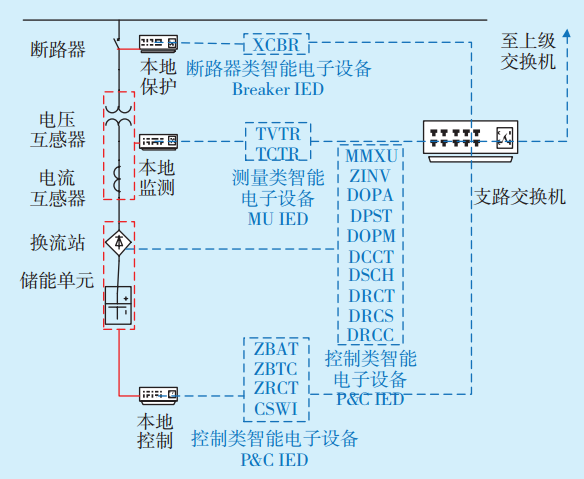 1)IEC61850標準將變電站劃分為過程層、間隔層和變電站層。過程層主要包括智能組件、智能終端元件和合并單元類設備;間隔層主要包括穩(wěn)控裝置、測控裝置、繼電保護裝置和故障錄波裝置等;變電站層設備則主要包括工程師工作站、操作員站監(jiān)控主機、數(shù)據(jù)服務器、數(shù)據(jù)通信網(wǎng)關、綜合應用服務器等。微網(wǎng)數(shù)據(jù)建模同樣需要按照設備功能的不同劃分為3個層次[8]。