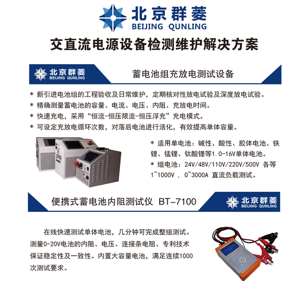 群菱專業(yè)致力于蓄電池檢測(cè)領(lǐng)域,可以根據(jù)用戶現(xiàn)場(chǎng)需求,制作詳細(xì)檢測(cè)技術(shù)方案。北京群菱的蓄電池維護(hù)測(cè)試技術(shù)方案主要有: