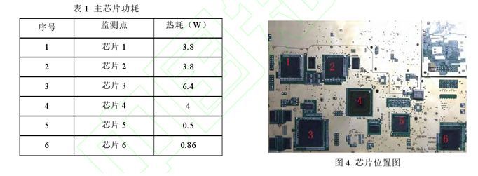 該設(shè)備需在環(huán)境溫度 40℃下進行工作,主要芯片功耗如下表 1 所示,芯片位置如圖 4 所示。