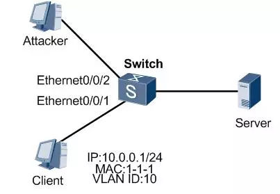 為了避免受到中間人攻擊,可以在交換機(jī)上配置ARP報文檢查功能,對接口或VLAN下收到的ARP報文和綁定表進(jìn)行匹配檢查,當(dāng)報文的檢查項和綁定表中的特征項一致時,轉(zhuǎn)發(fā)該報文,否則丟棄報文。