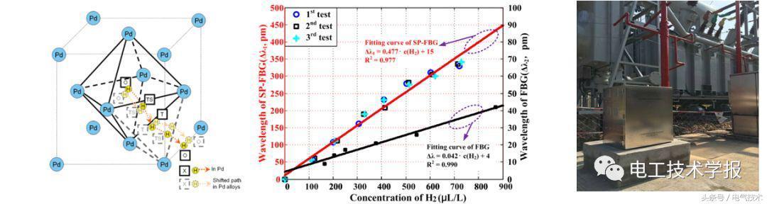 研究成果1:提出并研制了光纖光柵油中溶解氫氣傳感器,可以直接放入油中,不需要載氣標(biāo)氣,響應(yīng)時(shí)間短。傳統(tǒng)FBG氫氣傳感器遲滯較大,采用磁控濺射和金屬摻雜方法制備傳感器,消除了傳感器遲滯。