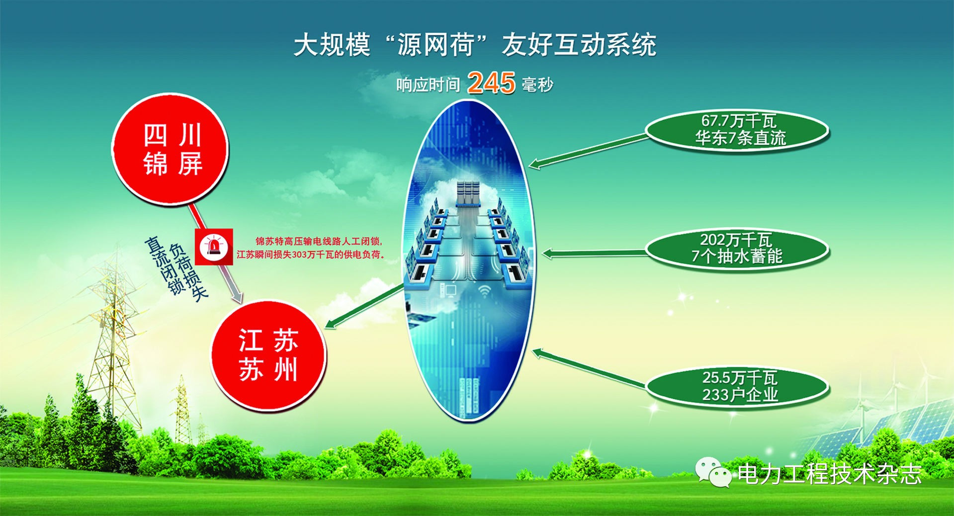 2017年5月24日下午,國(guó)內(nèi)首套大規(guī)模源網(wǎng)荷友好互動(dòng)系統(tǒng)精準(zhǔn)切負(fù)荷實(shí)切演練圓滿完成。245ms內(nèi),江蘇233戶電力用戶255MW的用電負(fù)荷被瞬間切除,此舉與其他保障措施一起,瞬間平衡了蘇州電網(wǎng)3000MW的負(fù)荷缺口,電網(wǎng)安全得到保障。