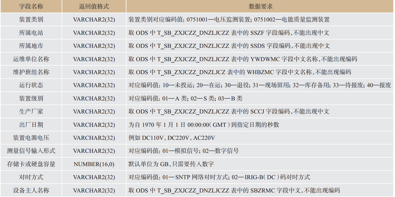 臺(tái)賬數(shù)據(jù)接口包括監(jiān)測(cè)終端的臺(tái)賬數(shù)據(jù)接口、測(cè)試儀器/檢定裝置的臺(tái)賬數(shù)據(jù)接口、監(jiān)測(cè)點(diǎn)的臺(tái)賬數(shù)據(jù)接口、電網(wǎng)設(shè)備的臺(tái)賬數(shù)據(jù)接口。