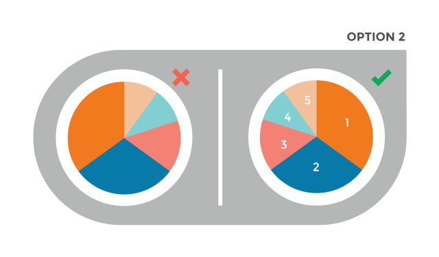 餅圖的設(shè)計(jì)應(yīng)該直觀而清晰,理論上,一個(gè)餅圖不應(yīng)該分割超過(guò)5塊。