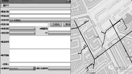 風(fēng)險(xiǎn)及隱患管理。傳統(tǒng)管理模式只是采用手工記錄方式,管理較為粗狂。利用電纜精益化管理系統(tǒng),可以將風(fēng)險(xiǎn)及隱患臺(tái)賬信息化處理,并與地理信息系統(tǒng)結(jié)合,在地圖上選取、展示隱患設(shè)備,提高隱患管理的精益化水平。圖3為隱患信息與地理信息系統(tǒng)展示。