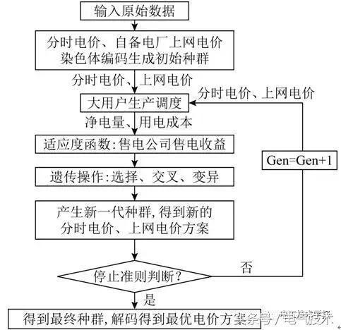 針對該模型的復雜性,提出遺傳算法和混合整數(shù)規(guī)劃法相結合的混合優(yōu)化算法,在采用遺傳算法解決上層優(yōu)化模型的同時,利用代數(shù)技術將下層模型中非線性部分等價線性化后,使用商用混合整數(shù)線性規(guī)劃求解器求解,并嵌入到遺傳算法中,高效地實現(xiàn)了工業(yè)大用戶分時電價的上、下層協(xié)調(diào)優(yōu)化。