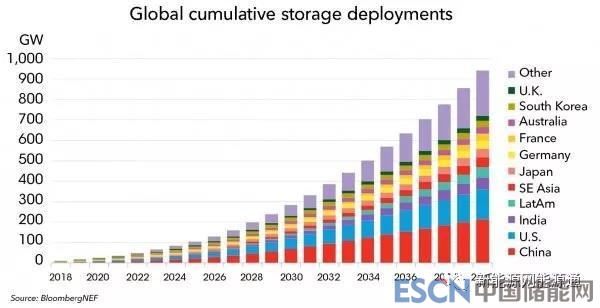 根據(jù)研究公司彭博新能源財(cái)經(jīng)(BNEF)的最新年度預(yù)測,從現(xiàn)在到2040年,電池成本的下降將推動全球范圍內(nèi)安裝儲能系統(tǒng)的熱潮。