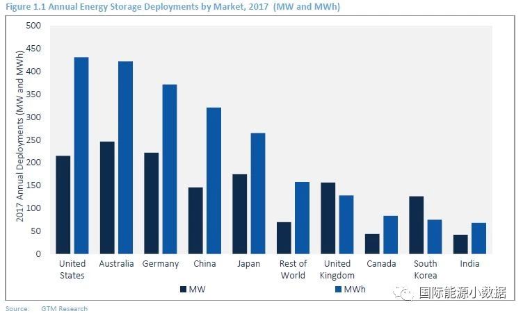 根據(jù)GTMResearch日前發(fā)布全球儲(chǔ)能報(bào)告,2017年全球新增儲(chǔ)能容量1 4吉瓦、電量230萬千瓦時(shí)。從容量的角度來看,澳大利亞新增246兆瓦,居全球