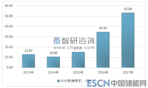2013-2017年我國光伏新增統(tǒng)計