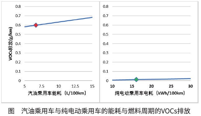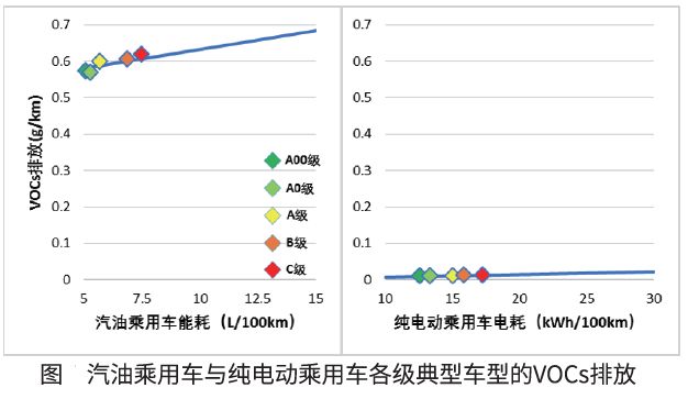 結(jié)論:純電動(dòng)乘用車(chē)的VOCs和NOX排放因子均低于相應(yīng)級(jí)別的汽油乘用車(chē)
