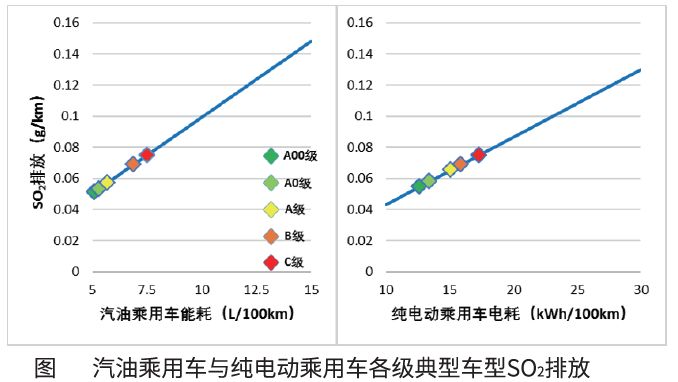 A00級(jí)、A0級(jí)和A級(jí)純電動(dòng)乘用車(chē)的典型車(chē)型,SO2的排放因子分別高出同級(jí)別的汽油乘用車(chē)8%、10%和15%,B級(jí)和C級(jí)純電動(dòng)乘用車(chē)的SO2排放與同級(jí)別汽油乘用車(chē)基本相當(dāng)。