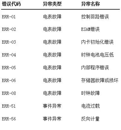 首先為大家奉上常見的電表異常類型和報警方式: