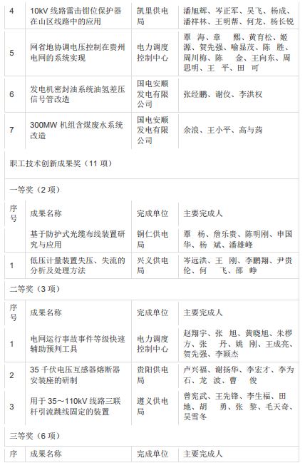 2017年度貴州省電力科技獎(jiǎng)名單